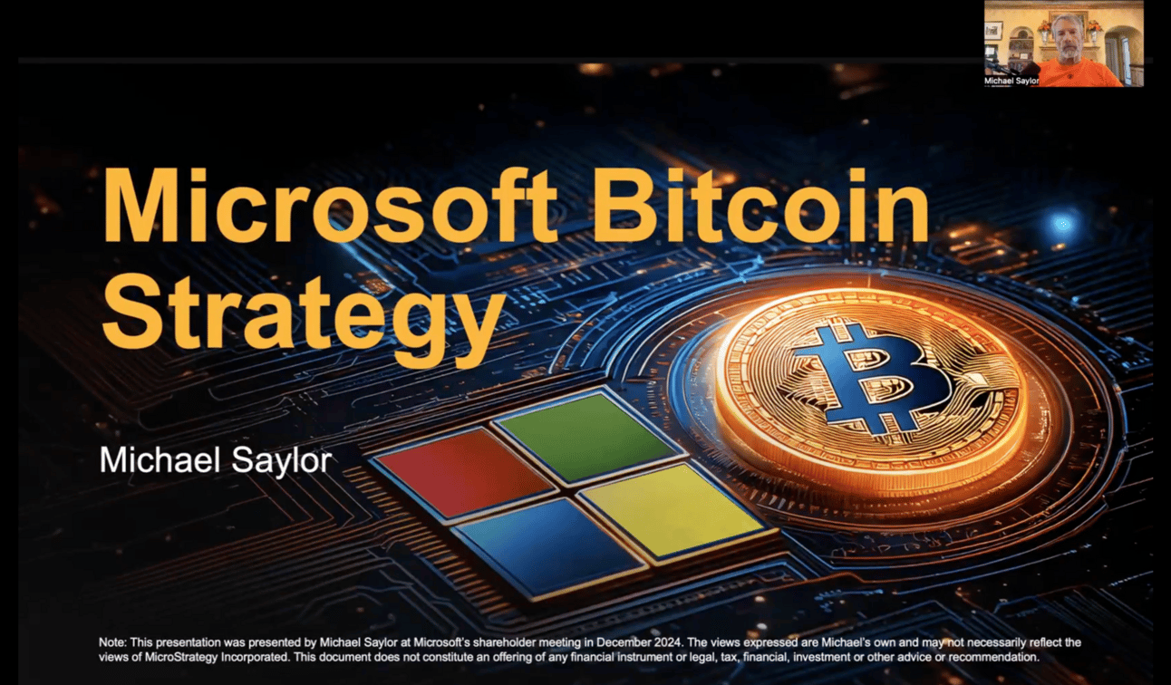 Michael Saylor released his 3-minute presentation which he presented to the Microsoft Board of Directors, articulating why the company should “do the right thing” and adopt Bitcoin.